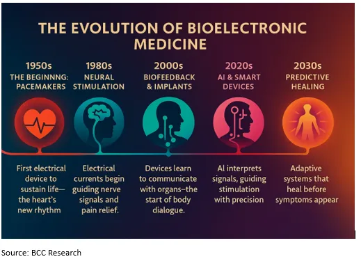 The market for bioelectronic medicine, extending beyond the confines of laboratory facilities, is still in a stage of rapid growth. Industry analysts claim that the sector is driven by such innovations as neurostimulation, AI-based diagnostics and the advent of minuscule implants. North America is still leading the way, propelled by early regulatory approvals and well-established research programs. However, Europe and the Asia-Pacific are two regions where there are considerable changes in the investments of translational medicine and academic-industry partnerships. Besides, the market is expanding its boundaries beyond the central nervous system and pain disorders to the cardiovascular, immune and regenerative therapies.