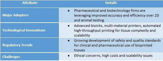 Recent healthcare trends have focused on precision medicine and the elimination of animal testing, both of which are driving the pharmaceutical industry's adoption of 3D bioprinting. Bioprinter models continue to garner growing acceptance and trust among clinicians and regulators, a vital aspect for eventual translation into the clinical setting and large-scale impact.