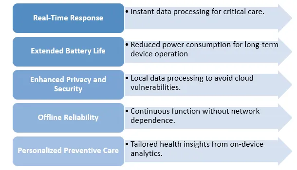 - Reliable Even Offline: Many patients face network outages or live in areas with unreliable internet connections. In these cases, edge AI-powered devices can operate effectively, ensuring safety and monitoring.