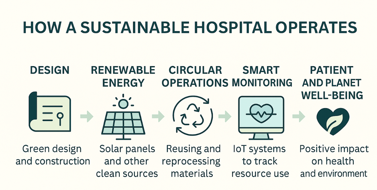 The concept of green healthcare facilities is transforming healthcare systems globally through their construction and operation, utilizing clean energy, circular supply chains and data-driven energy management, among other techniques. Innovative care, once considered a distant future, is now a necessity: it is tomorrow's care that is being changed into one that is eco-friendly, smart, and crisis-resistant.