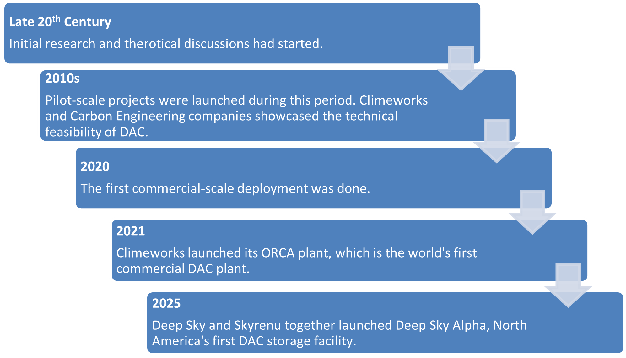 Global temperature and climate impacts have been intensifying over the past few decades. NASA stated that the Earth was approximately 1.47°C warmer in 2024 than it was in the 19th century. These changes have necessitated an urgent shift in controlling CO₂ levels, thereby leading to the demand for DAC technology. This technology helps remove and reduce not only the current carbon particles but also the historical carbon emissions present in the environment.
