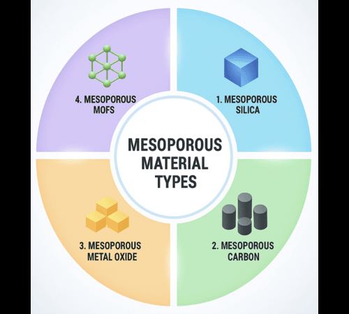 Mesoporous materials are substances that contain pores with diameters ranging from 2–50 nanometers. Since mesoporous materials have a large surface area and tunable pore size, they are utilized as superior adsorbents to eliminate pollutants. They find applications in separation, catalysis, drug delivery and electrodes in technologies such as fuel cells and supercapacitors. Recent methods used to synthesize mesoporous materials include hydrothermal synthesis, microwave synthesis and the sol-gel method. They are also extensively utilized in sensors, where the high surface reactivity and stability of mesoporous materials help enhance the sensitivity and detection accuracy of the sensors. Mesoporous carbon, mesoporous metal oxide, mesoporous silica and mesoporous metal-organic frameworks (MOFs) are some of the major types of mesoporous materials.