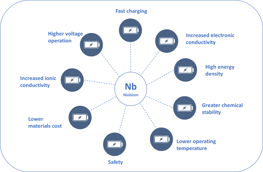 Niobium (Nb) is rapidly becoming a game-changing element in energy storage batteries, especially lithium-ion batteries, with advantages such as fast charging speeds, safety and better performance.