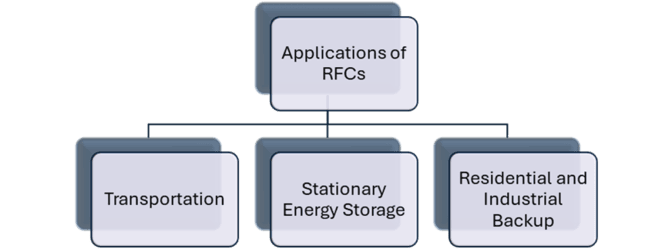 Transportation: Hydrogen fuel cell vehicles, which effectively store and release energy as needed to increase transportation's range and efficiency, are constantly being considered in the transportation industry. RFCs are used in hydrogen fuel cell vehicles in the transportation sector, leveraging the efficiency of these cells to convert hydrogen into electricity rather than relying on internal combustion engines (ICE).
